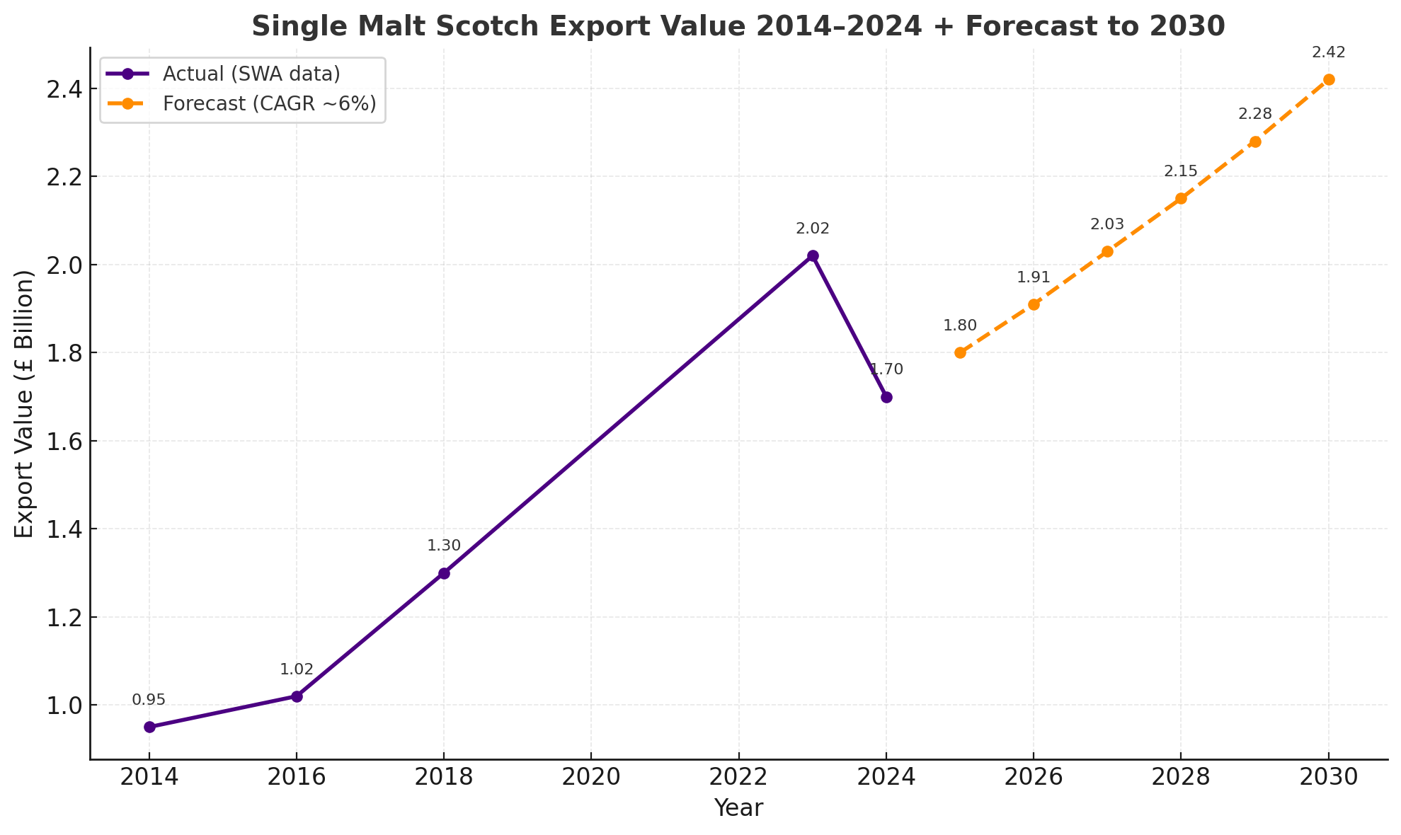 שוק הסינגל מאלט העולמי נמצא בצמיחה מתמשכת. משנת 2014 ועד 2023 נרשמה עלייה חדה ביצוא, עד לשיא היסטורי של יותר מ־£2 מיליארד. בשנת 2024 נרשמה ירידה קלה – תיקון טבעי לאחר שנת שיא חריגה – אך עדיין מדובר בהיקף עצום של כ־£1.7 מיליארד, המהווה כ־31% מכלל יצוא הסקוטש.